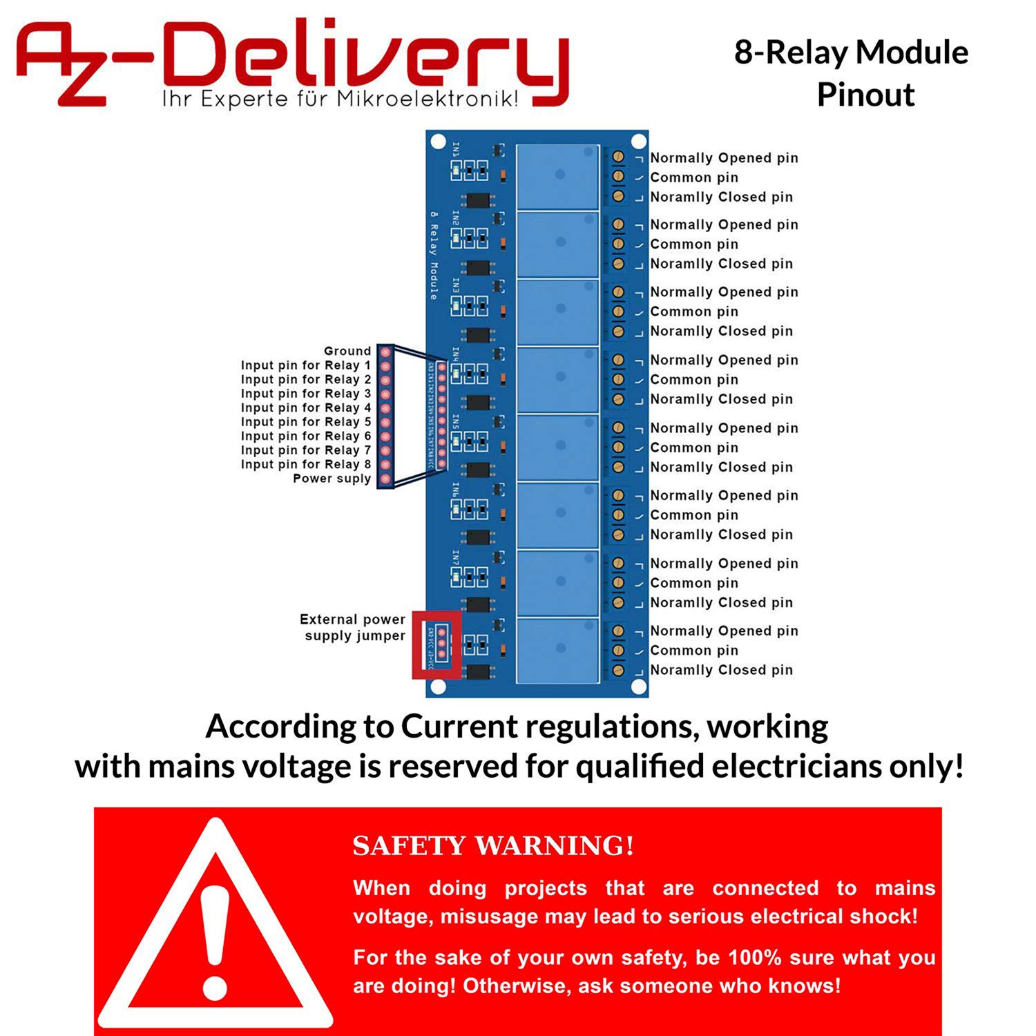 AZ-Delivery relay modules switch many switching processes quickly and reliably. Thanks to an additional transistor, the module can be switched with most microcontrollers with little power. The relays used are generously dimensioned to enable continuous operation even under unfavorable operating conditions.