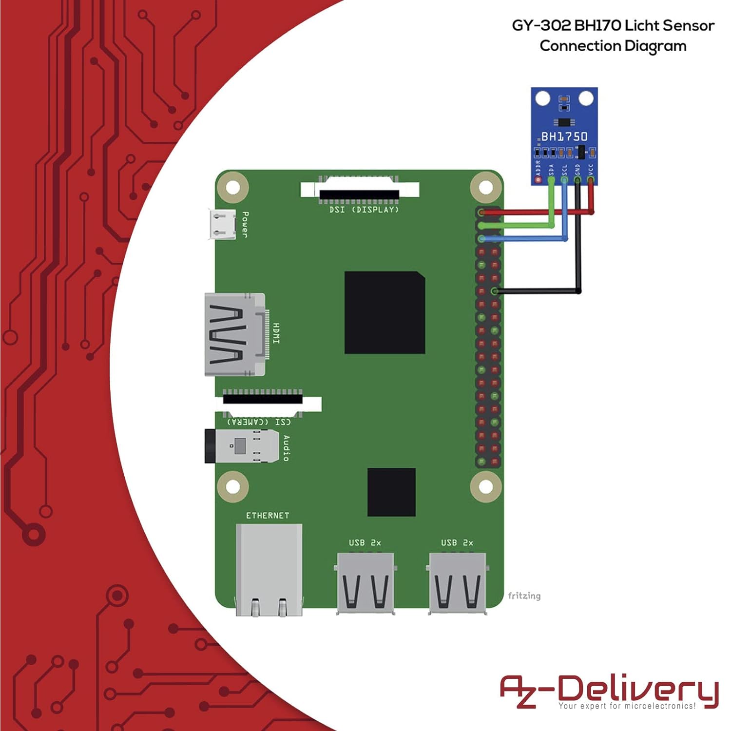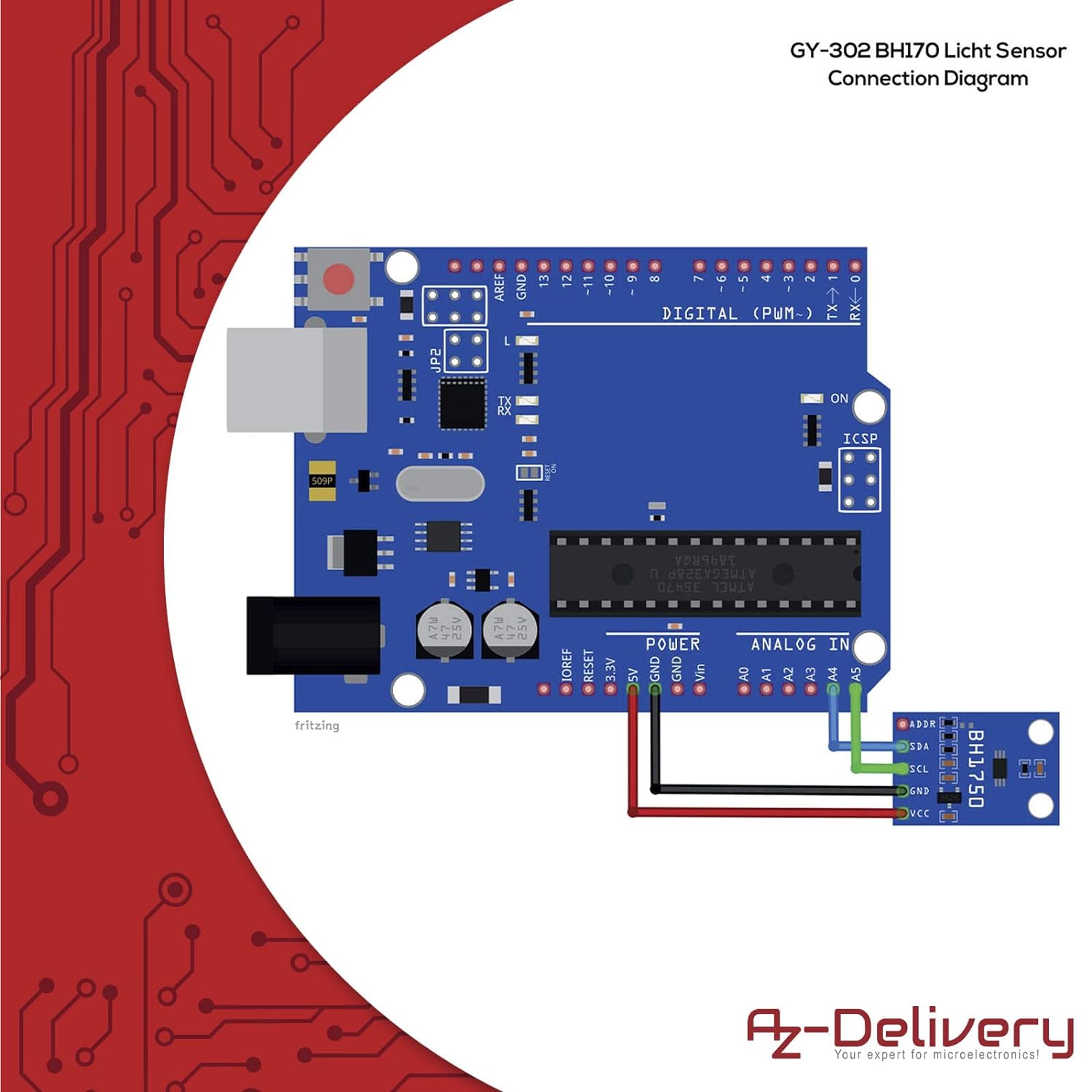 Sensor AZDelivery GY-302 mit BH1750 Chipsatz ist ein moderner Licht-Sensor, der die Helligkeit bzw. Sonneneinstrahlung gut dokumentiert.