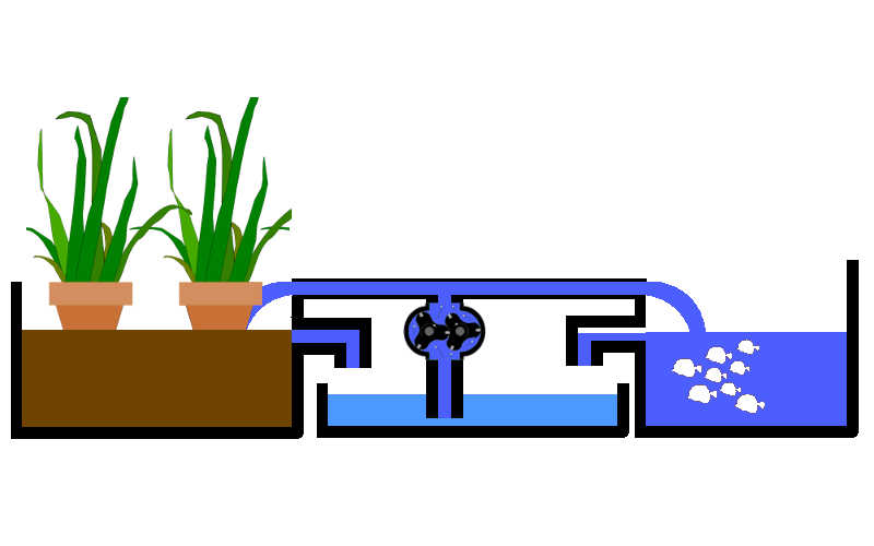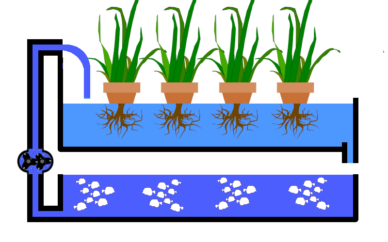 Die Umwandlung der Ausscheidungen in von Pflanzen verwertbare Nährstoffe erfolgt mithilfe von Mikroorganismen. Dabei erfolgt auch gleichzeitig eine Reinigung des Wassers, so dass es in das Fischbecken zurückgeführt werden kann und die Fische gute Lebensbedingungen haben. So entsteht ein Kreislauf mit Win-Win Situation. Neben dem Anbau von Salat und Gemüse werden Fische als Nahrungsmittel gezüchtet oder Teiche mit Zierfischen sauber gehalten.