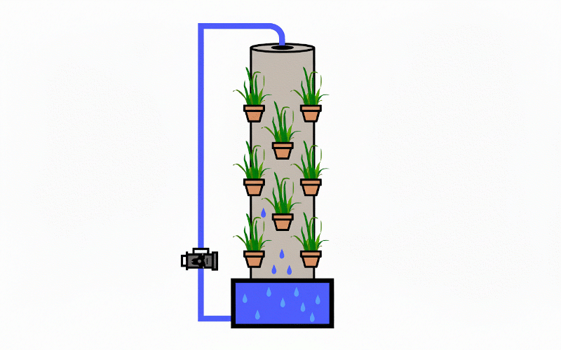 Vertikale Hydroponik nutzt Türme oder Röhren, in denen Pflanzen übereinander wachsen. Die Nährlösung zirkuliert von oben nach unten. Dadurch wird der Platz optimal genutzt, besonders für Urban Farming und Indoor-Gärten. Ideal für Salat, Kräuter und kleine Gemüsearten.