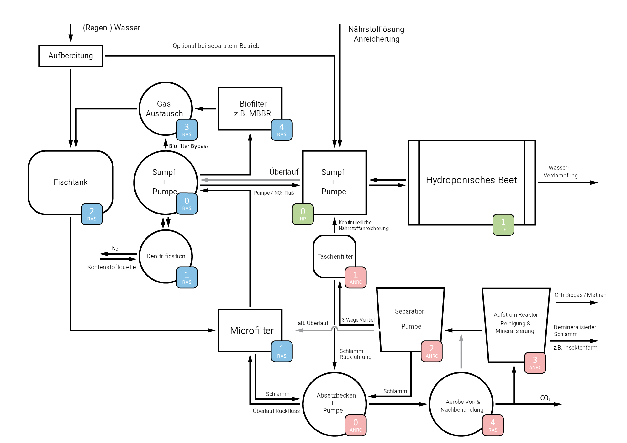 Während RAS (Rezirkulierende AquakulturSysteme) und Hydroponik seit Jahrzehnten Gegenstand der Forschung sind, steckt die Remineralisierung von Fischschlamm noch in den Kinderschuhen. In der Abhandlung haben wir die Vor- und Nachteile der aeroben Vor- und Nachbehandlung der anaeroben Vergärung diskutiert.