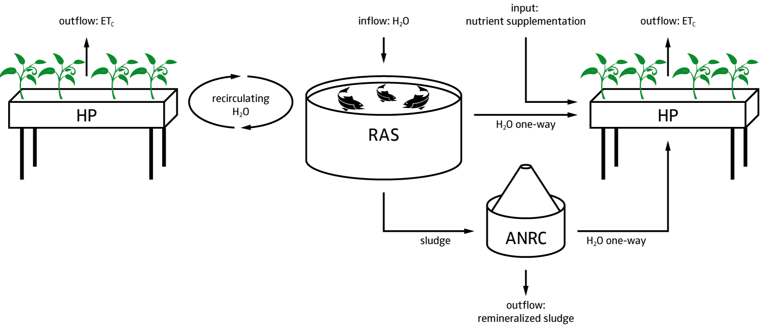 Obwohl viele Aquaponik-Systeme als Kreislauf konstruiert und betrieben werden, erweitern kommerzielle Erzeuger und Forscher dieses anfängliche Aquaponik-Systemdesign hin zu einer unabhängigen Kontrolle über jede Systemeinheit (d.h. RAS, Hydroponik und Nährstoffrückgewinnung durch Schlammremineralisierung: Rezirkulierten AquakulturSysteme).