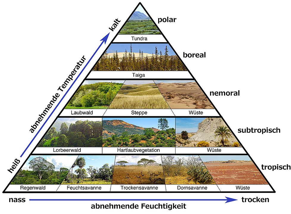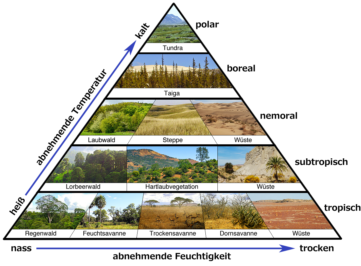 Vegetationsformen als Vorgabe zur Begrenzung der Klimagebiete verwendet (stark vereinfachte Darstellung).